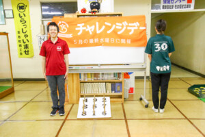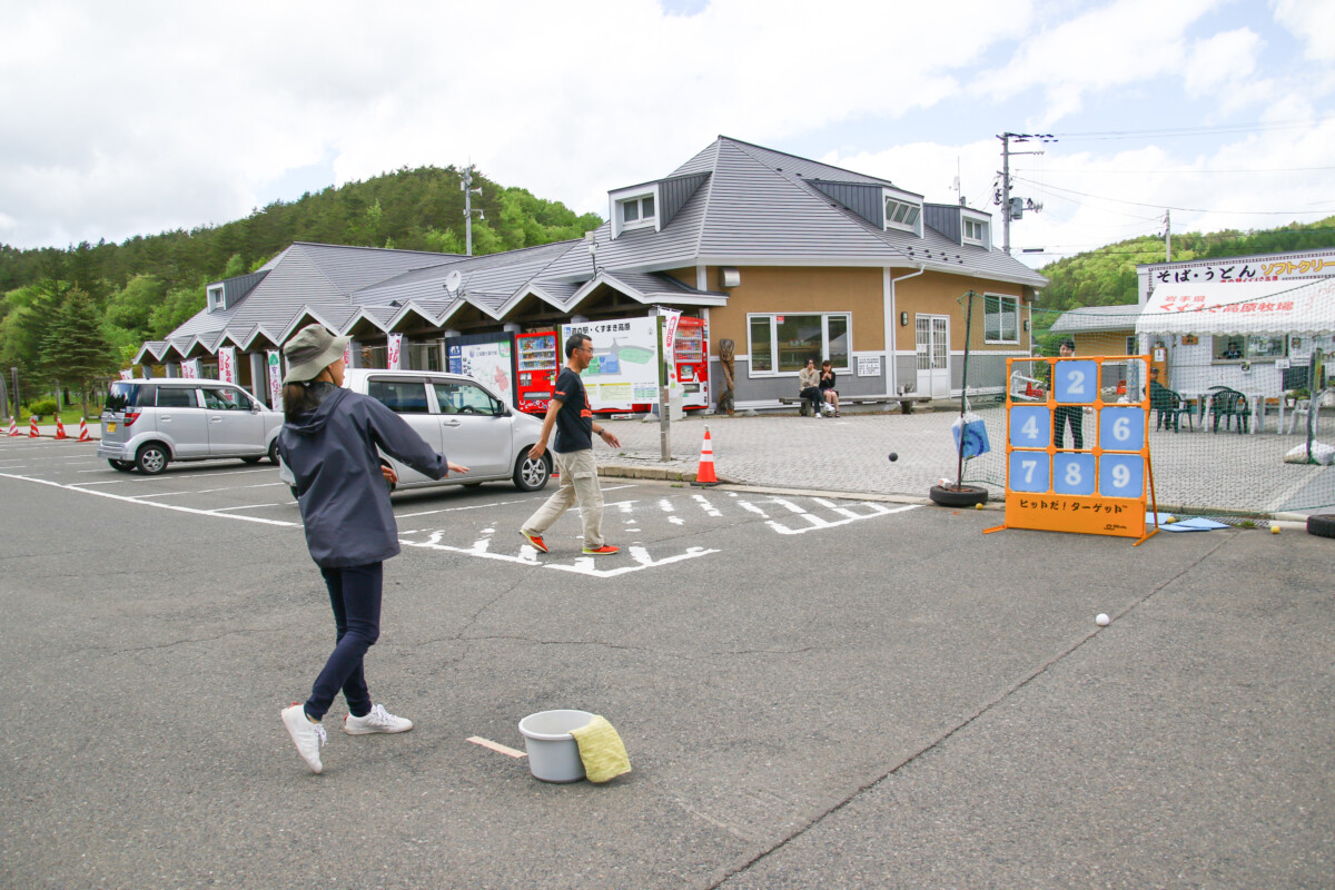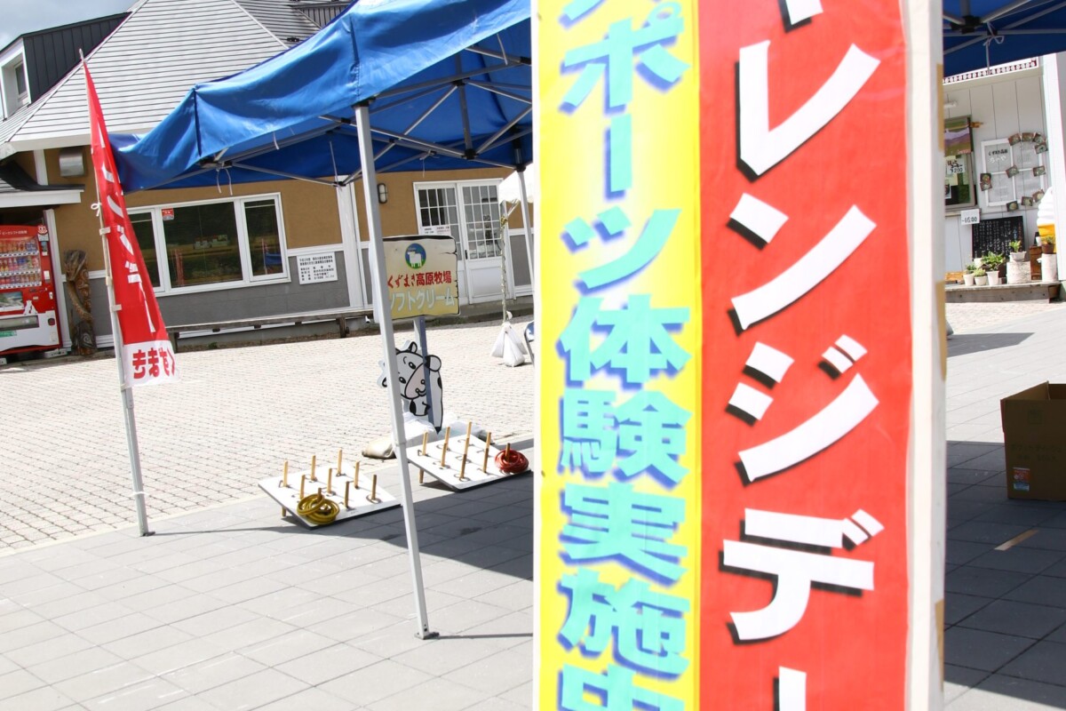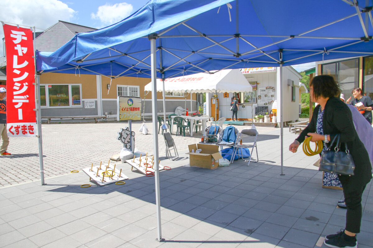 道の駅くずまき高原では外で輪投げとストラックアウトの体験を行っており、道の駅を訪れた観光客に声かけをしてチャレンジデーへの参加を促していました。