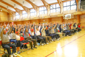 葛巻町では今回が25回目の参加となり、初参加で姉妹都市の北中城村と対戦をしました。これまでの葛巻町の通算成績は16勝11敗1引き分け、平成7年の初参加以来24年連続で金メダル*を獲得しています。(※カテゴリー3では55%以上、カテゴリー4では51%以上の参加率が金メダルの条件)