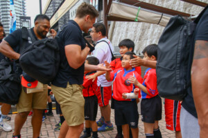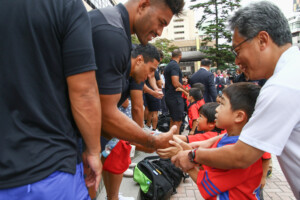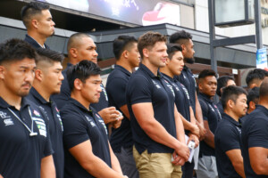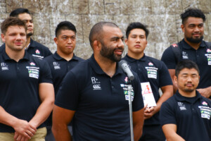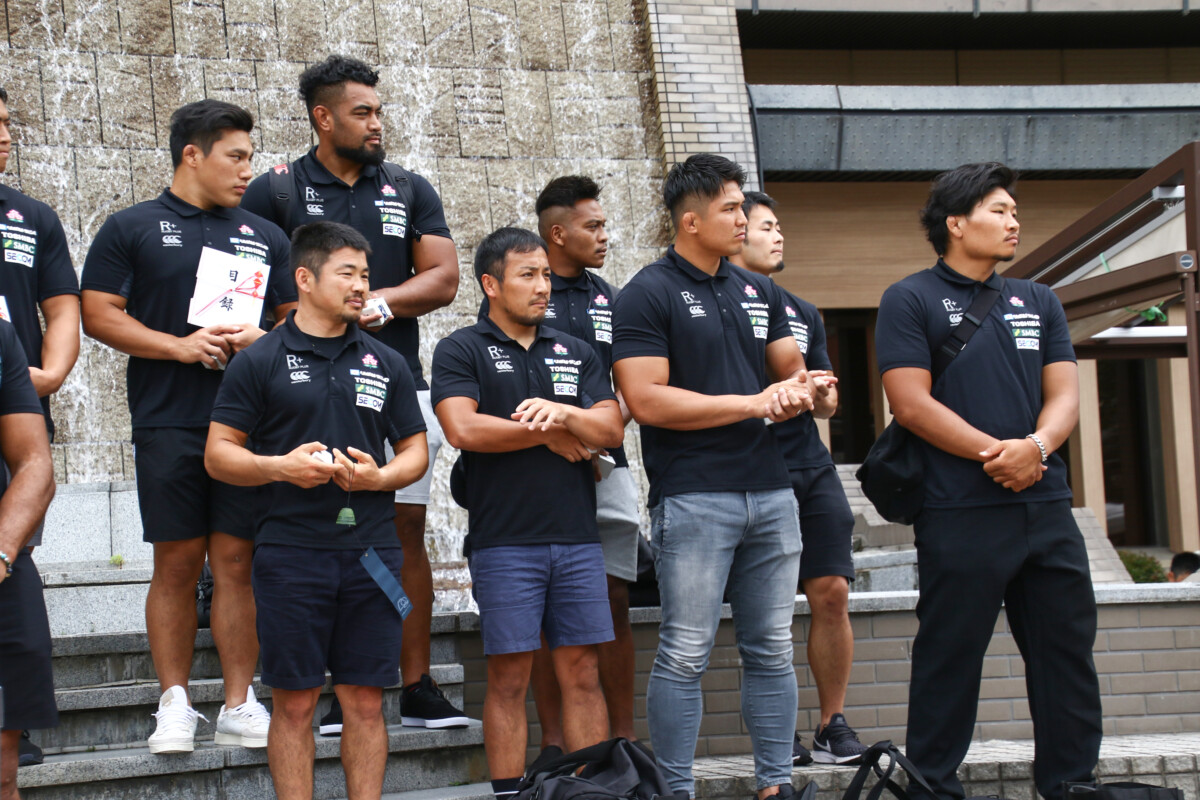 歓迎を受けて、主将のリーチ マイケル氏は「盛岡合宿では試合に向けてよい準備をしたい」と意気込みを語ってくれました。