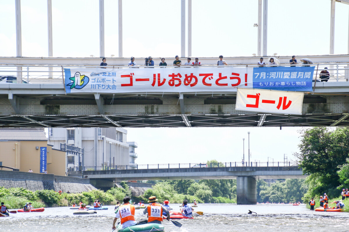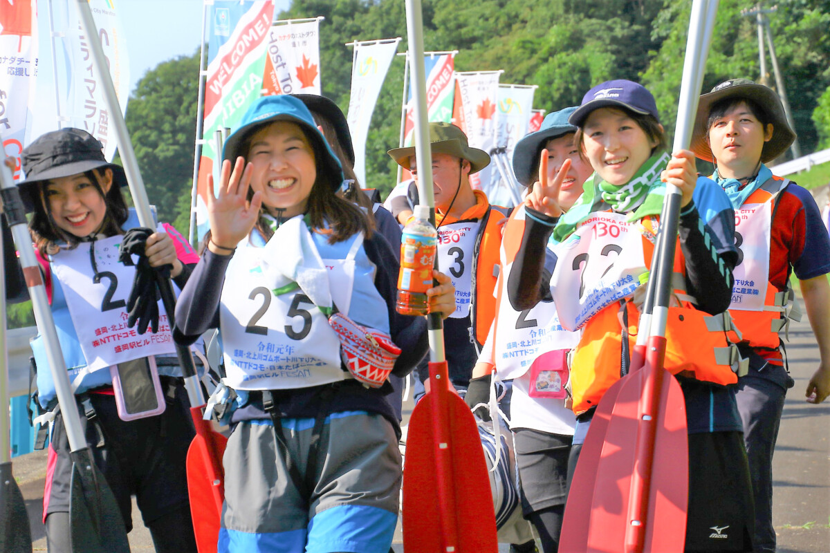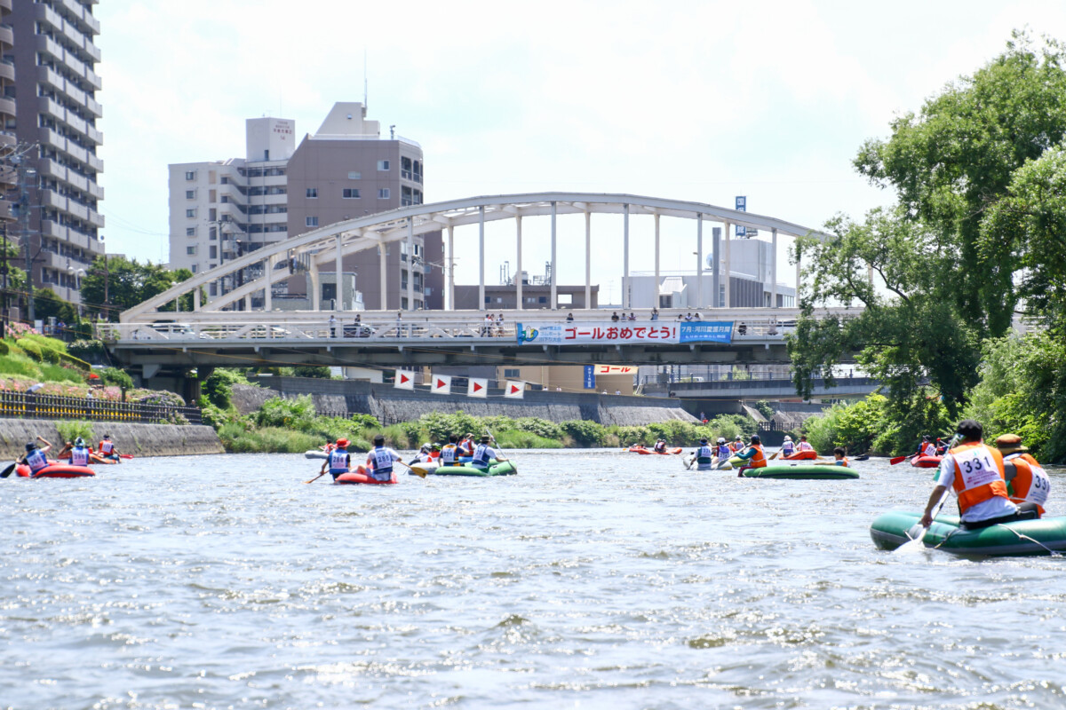 普段見ることのできない北上川からの景色をゴムボートの上から堪能しながら、チームメンバーと協力してゴールを目指す非日常体験。青空の元、夏の北上川を色とりどりのゴムボートが進む様子は盛岡の夏の風物詩と呼ぶにふさわしい、盛岡・北上川ゴムボート川下り大会でした。