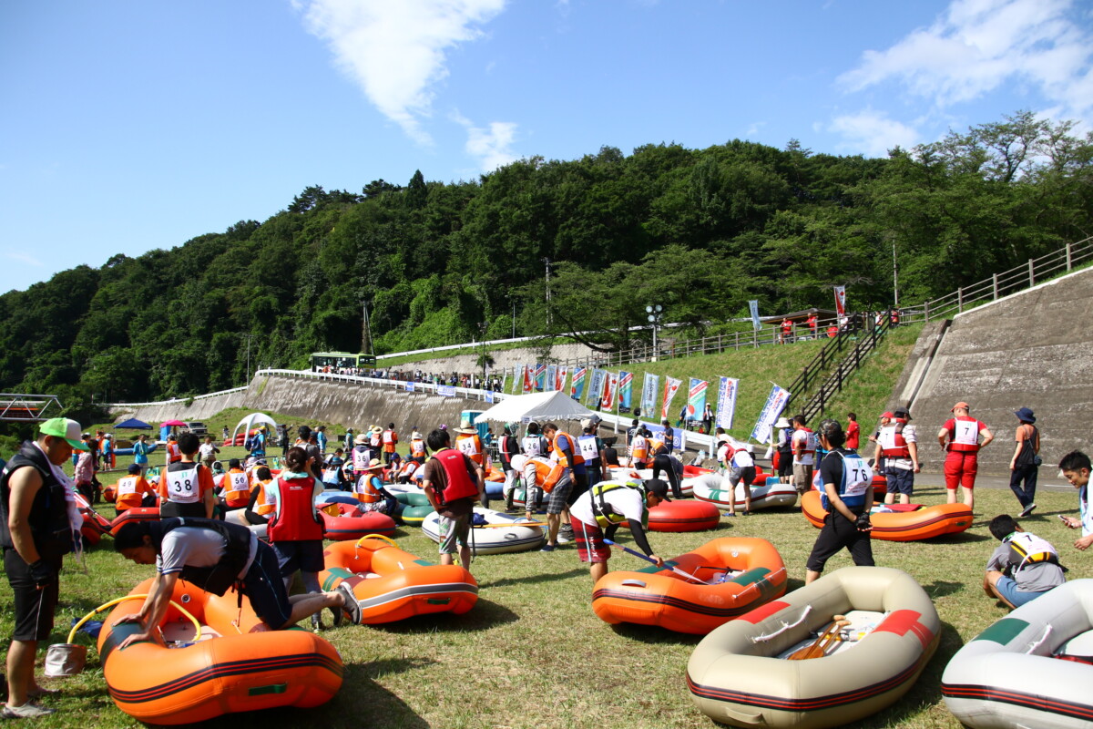 南部片富士湖を臨む四十四田ダムをスタートし、盛岡駅前の開運橋を通過して南大橋までの約11キロメートル北上川を下る盛岡・北上川ゴムボート川下り大会には、ゴールまでの時間を競うタイムレース部門(総合・男性・女性・混合・親子)と自由に川下りを楽しむフリーレース部門があります。