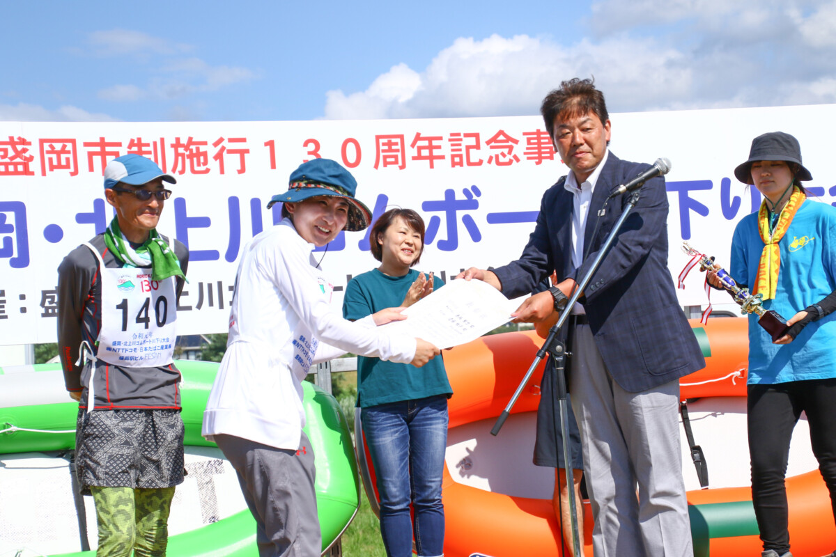 川下りボートレース大会の中では最大級の参加艇数を誇る本大会は、2015年7月26日に開催された第39回大会で完走艇数814艇・完走者数1,628名の参加者数でギネス世界記録に認定されています。盛岡市制施行130周年の記念事業として行われた今年度の大会は、完走艇数641艇,完走者数1,282人となりました。