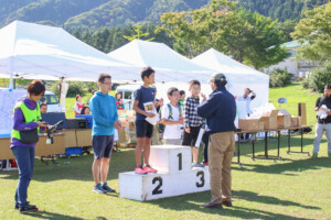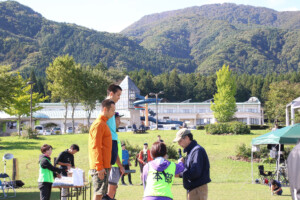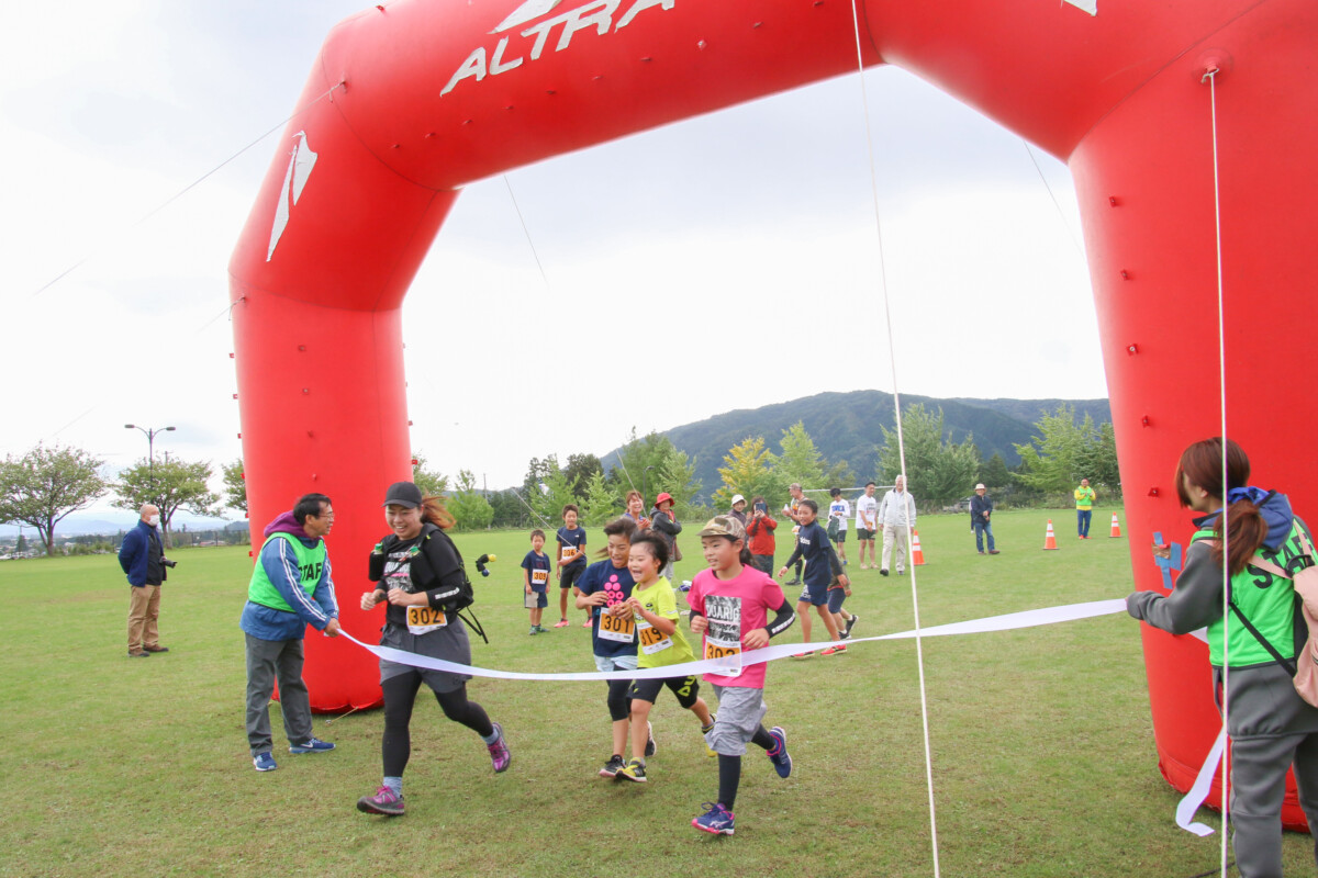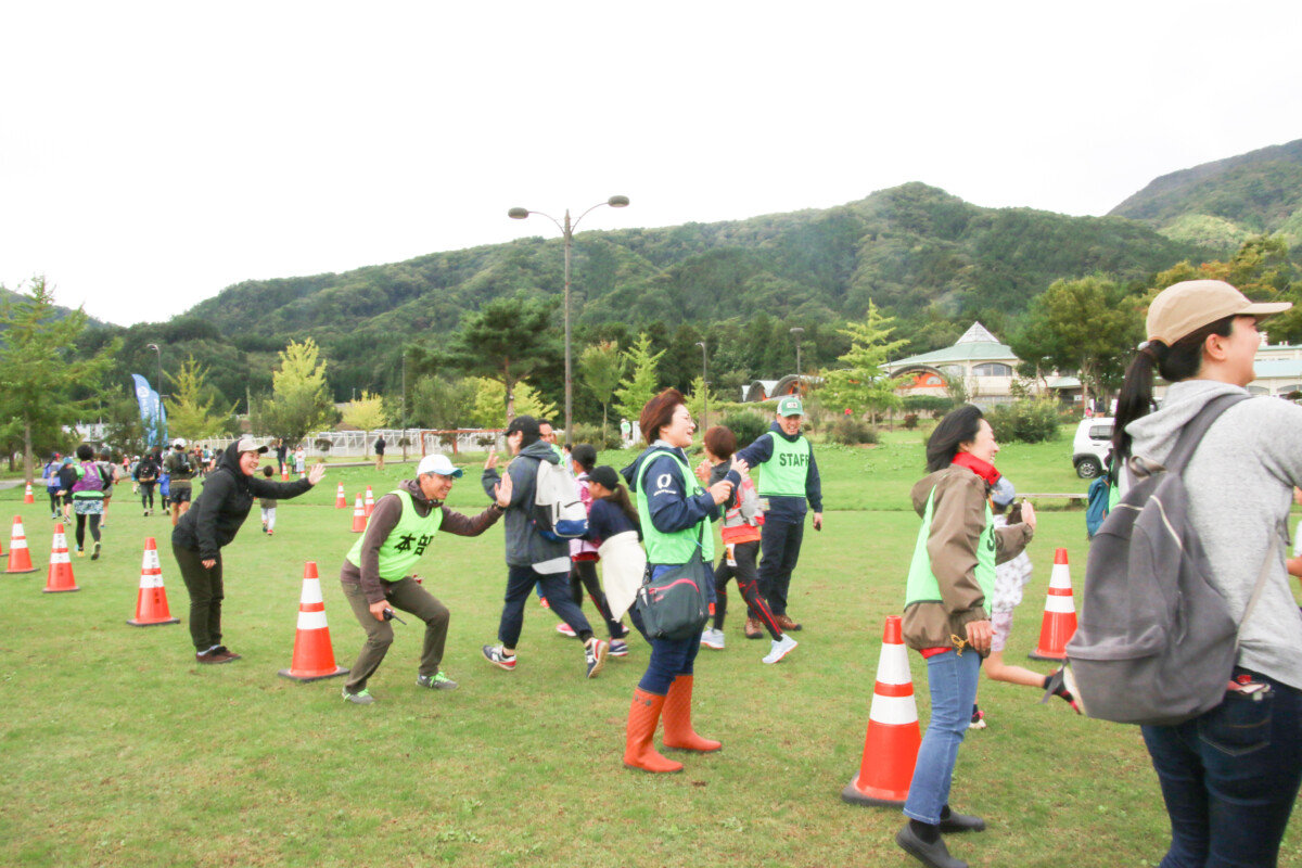 スタートとゴール地点となっているラ・フランス温泉館多目的グラウンドでは「あづまねジャンボリー」が併催され、地元の美味しいフードやアウトドア用品の出展ブース、子供も遊べるアクティビティなど、ランナー以外の方々も楽しむことができるイベントでした。
