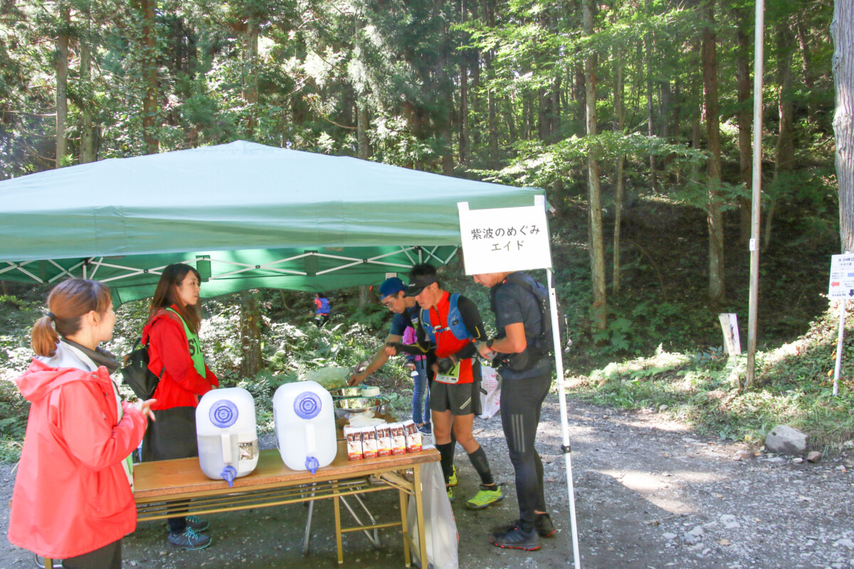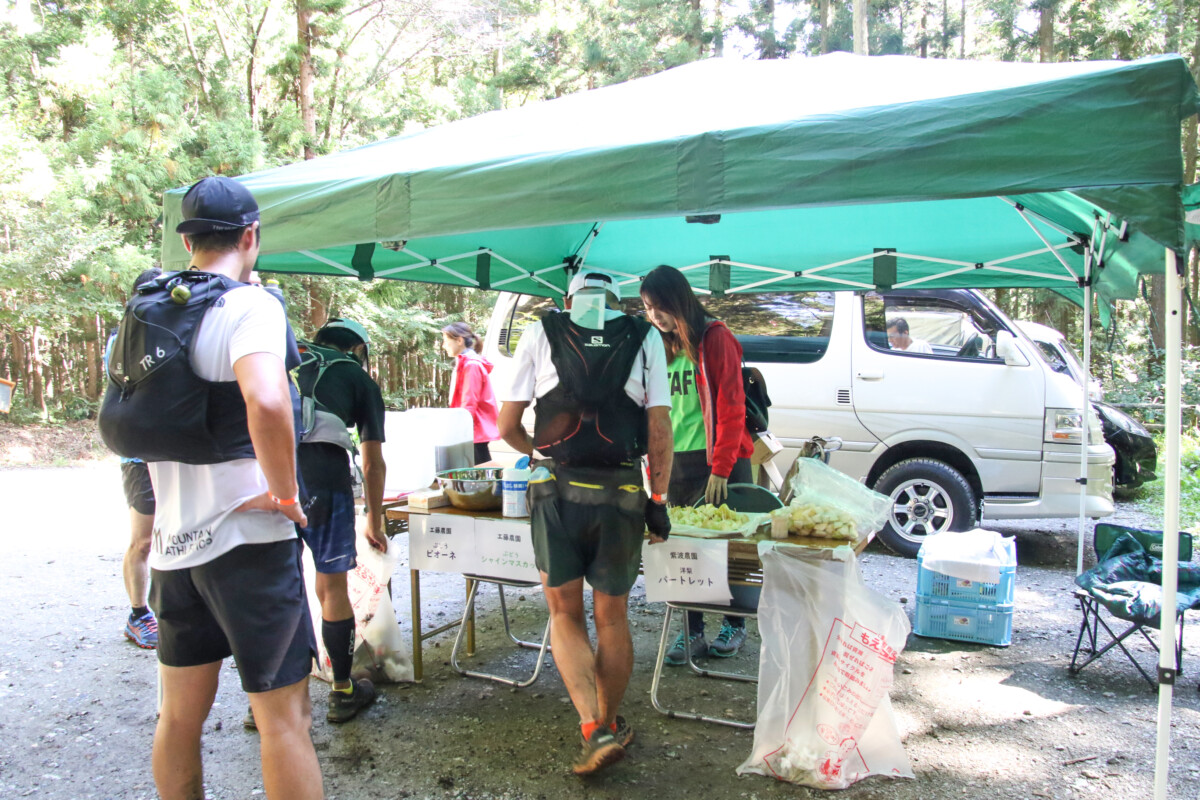 当日は清々しい秋晴れとなり、200名を超えるランナーが木漏れ日のさす森の中をそれぞれのペースで駆け抜けました。コース途中にある水分神社がエイドステーションになっていて、給水と紫波町の特産品のぶどうと洋梨が振舞われ、紫波町の秋の味覚に舌鼓を打ちながら一時休憩をしていました。